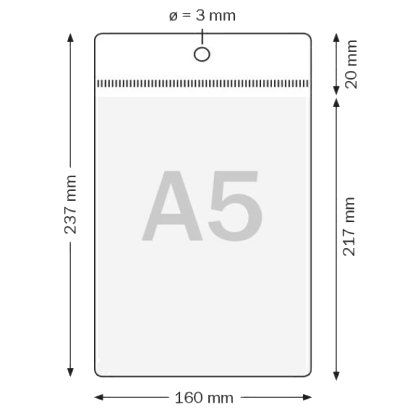 PVC tasku A5, 160x217mm – vertikaalne